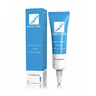 Kelo cote est un gel de silicone breveté indiqué en prévention et en traitement des cicatrices hypertrophiques et chéloïdes. Pratique à utiliser, il est bien toléré. (dispositif médical de classe I)