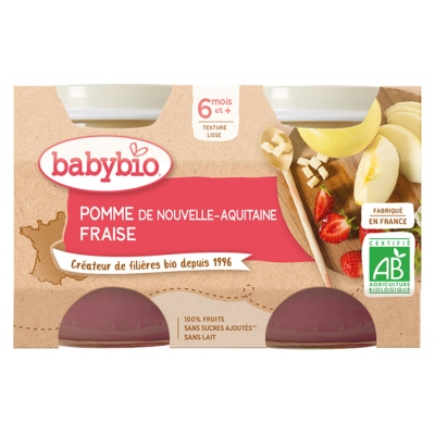 Babybio Pomme Fraise 6 Mois et + Bio 2 Pots de 130 g