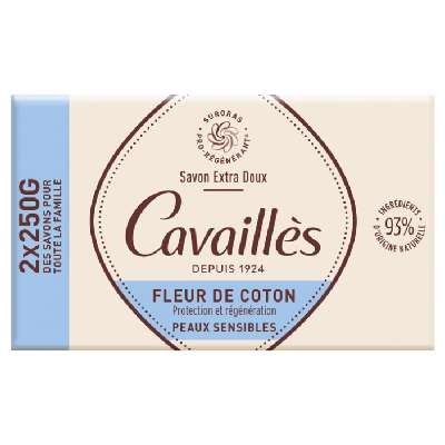 Rogé Cavaillès Savon Extra Doux Fleur de Coton Lot de 2 x 250 g est un savon spécialement formulé pour nettoyer les peaux sensibles et délicates de toute la famille, tout en respectant leur intégrité cutanée. Enrichi en huile d'amande douce, il dépose sur la peau un film protecteur, procurant confort et souplesse aux peaux sensibles et délicates.