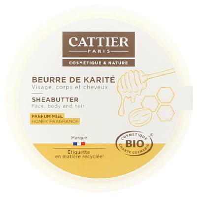 Le Beurre de Karité bio Cattier parfumé au Miel nourrit et hydrate intensément l'épiderme.