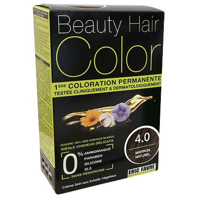 Eric Favre Beauty Hair Color Coloration Permanente - Teinte : 4.0 Marron Naturel est une coloration permanente dermocapillaire aux extraits végétaux.