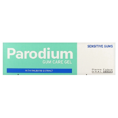Le gel gingival Parodium pour gencives fragilisées contient de l'extrait de rhubarbe et de la chlorhexidine.