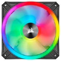 Corsair CO-9050100-WW. Convient pour: Boitier PC, Type: Ventilateur, Diamètre du ventilateur: 14 cm. Couleur du produit: Noir, Gris, Nombre de ventilateurs: 2 ventilateur(s), Couleur de l'éclairage: Multicolore. Tension: 6 - 13.2 V, Courant nominal: 0,3 A. Poids: 469 g. Type d'emballage: Boîte