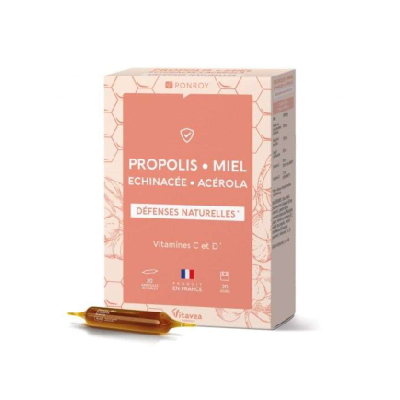 YVES PONROY API CONSEIL AMPOULES PROPOLIS – MIEL – ASTRAGALE – ECHINACÉE – ACÉROLA Boite de 20 Ampoules