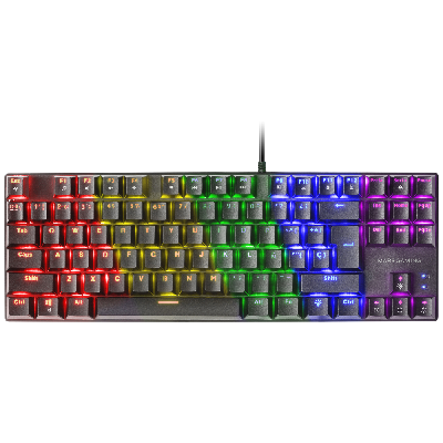 Mars Gaming MK80. Facteur de forme du clavier: Sans clé (80 - 87%), Interface de l'appareil: USB, Interrupteur à clé de clavier: Clavier mécanique, Disposition des touches du clavier: AZERTY. Type de rétro: LED RGB. Longueur de câble: 1,5 m. Utilisation recommandée: Jouer. Couleur du produit: Noir