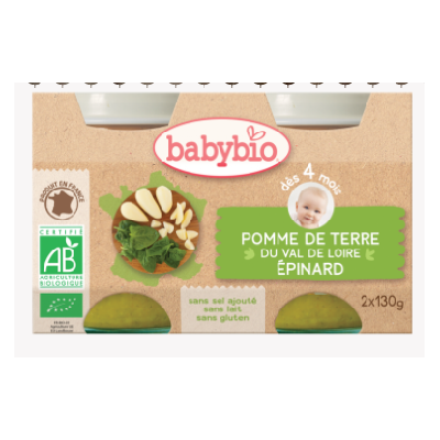 Babybio pomme de terre du val de loire, épinard, dès 4mois, 2*130g