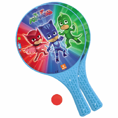 Coffret aux couleurs de PYJAMASQUES, comprenant 2 raquettes en plastique et 1 balle.