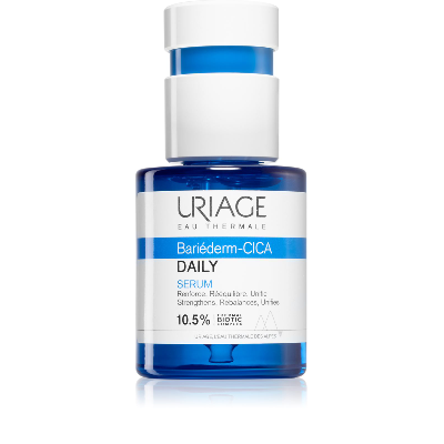URIAGEBariederm CicaCica Daily Sérum peaux fragilisées 30mlACTION 1 RÉÉQUILIBREINNOVATION PRÉBIOTIQUES : 10,5% COMPLEXE THERMAL-BIOTICL’Eau Thermale d’Uriage associé à un prébiotique, l’Inuline, offre une action rééquilibrante unique sur la barrière cutanée et le microbiome.ACTION 2UNIFIE, APAISE ET FAVORISE LA RÉPARATION ÉPIDERMIQUEConcentré en Centella Asiatica réparatrice, associée à de l’Acide Hyaluronique Haut et Bas poids moléculaire et de la Vitamine B5, ce sérum hydrate intensément la peau, favorise sa réparation épidermique et homogénéise le teint.ACTION 3RENFORCE Sa formule aux dipeptides aide à stimuler la réparation de la peau pour prévenir l’apparition des signes de l’âge.PEAU UNIFIÉE 86% de satisfaction *PEAU RÉÉQUILIBRÉE 80% de satisfaction **Test d’usage sous contrôle dermatologique – 28 jours – 21 sujets (autoévaluation). Analyse métagénomique intra-individuelle du microbiome de la peau du visage (21 jours d’application du Sérum). 10,5% COMPLEXE THERMAL-BIOTIC. Eau Thermale d’Uriage, Inuline, Centella asiatica, Acides Hyaluroniques, Vitamine B5, Dipeptides. Non parfumé. Haute tolérance. Texture fraîche ultra-fluide. Testé sous contrôle dermatologique.Formule composée à 97% d’ingrédients d’origine naturelle.Flacon dropper en verre.