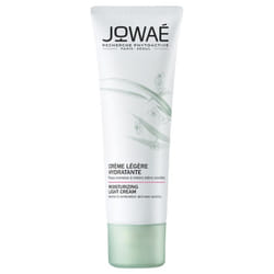 JOWAECrème hydratante légèreAux lumiphénols antioxydants et eau de fleurs de sakuraPeaux normales à mixtes, même sensiblesTesté sous contrôle dermatologique40mlRéhydrate, repulpe et désaltère. La peau est réhydratée, repulpée et rebondie. Rééquilibrée, elle retrouve son confort et sa souplesse. Le teint est frais et éclatant.88% d'ingrédients d'origine végétale.