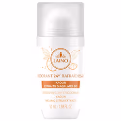 Laino Déodorant Efficacité 24H Extrait d'Agrumes 50 ml est un déodorant qui offre un effet fraîcheur et anti-odeurs. L'argile blanche kaolin et la glycérine procurent un effet ultra frais tout au long de la journée en absorbant l'humidité. Avec son parfum vivifiant aux notes d'agrumes, ce déodorant offre une protection efficace contre les odeurs pendant 24 heures.