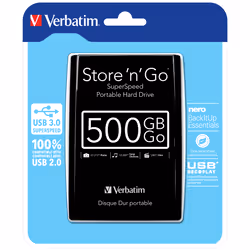 - Verbatim Disque dur portable USB Store 'n' Go 3.0, 500 Go, noir