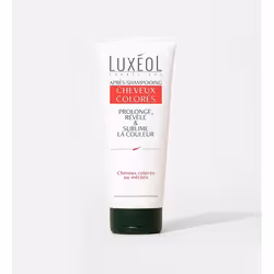 LUXEOL Après-Shampooing Cheveux Colorés Prolonge, révèle, sublime la couleur Cheveux colorés ou méchés 200ml Cet après-shampooing spécialement conçu pour les cheveux colorés ou méchés démêle facilement vos cheveux tout en respectant votre couleur. Vos cheveux sont nourris, brillants et votre couleur est protégée, éclatante et dure plus longtemps.PROLONGE LA COULEURRÉVÈLE LA COULEURSUBLIME LA COULEURFabriqué en France98% d'ingrédients d'origine naturelle**% d’ingrédients d’origine naturelle selon la norme ISO 16128.Résultats :Le produit convient aux cheveux colorés ou méchés : 98,4%**. Le produit démêle facilement les cheveux : 100%**.Le produit respecte la couleur : 96,8%**. Le produit nourrit les cheveux : 92,1%**. Le produit laisse les cheveuxbrillants : 95,2%**. Le produit protège la couleur des agressions extérieures : 82,5%**. Le produit conserve l’éclat de la couleur : 88,9%**. Le produit fait durer la couleur plus longtemps : 82,5%**. Le produit révèle la couleur des cheveux : 81,0%**. Le produit sublime la couleur des cheveux : 74,6%**. **Test consommateur réalisé sur 63 personnes, % de;satisfaction, après 7 semaines d’utilisation, deux à trois fois par semaine.