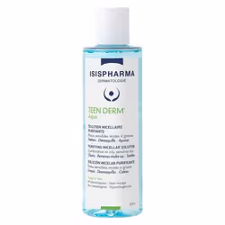 ISISPHARMA Teen Derm Aqua Solution Micellaire Purifiante Peaux sensibles mixtes à grasses 250mlTEEN DERM Aqua a été spécialement développé pour les peaux sensibles à imperfections. Enrichi en actifs séborégulateurs et astringents, il nettoie et démaquille en douceur tout en éliminant impuretés et excès de sébum. La peau est nette, fraîche et apaisée.
