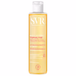 SVRTopialyseHuile lavanteAnti-grattage Peaux sèches à atopiques200mL Le soin lavant qui remplace tous les autres : gel douche, bain moussant, shampoing, hygiène intime, nettoyant visage et mains, démaquillant sous la douche. Ne pique pas les yeux.TOPIALYSE HUILE LAVANTE est un véritable soin lavant ; le premier geste de votre routine apaisante, anti-irritation, anti-grattage. Cette huile sensorielle riche en actifs relipidants et hydratants nourrit intensément la peau, préserve le film hydrolipidique et protège des agressions extérieures (froid, frottements) et des effets desséchants de l’eau calcaire.Sa texture huile soyeuse et enveloppante préserve l’hydratation pendant 24h pour un confort immédiat et longue durée. La peau est douce, le parfum délicat, c’est le produit chouchou de toute la famille !Qu’elle soit fragile ou sèche, la peau est plus facilement irritée par les facteurs environnementaux, l’eau calcaire ou encore les produits d’hygiène non adaptés (savon…). A tendance atopique, sa barrière est encore plus altérée. TOPIALYSE HUILE LAVANTE, un concentré d’actifs, de douceur et de tolérance dans un soin lavant et hydratant qui remplace tous les autres.35% d’actifs hydratants et relipidants :-    Omégas 3, 6 et 9 dont huile de coton : relipident, restaurent et préservent la barrière cutanée. -    Hydratation 24h.Niacinamide : actif de référence dans l'apaisement des peaux sensibles.Sucre prébiotique : respecte l’équilibre du microbiome, limite le grattage en aidant à rééquilibrer la flore cutanée.Base lavante tolérance optimale avec tensio-actifs ultra-doux : nettoie délicatement la peau sans l’agresser ni la dessécher. Elle est protégée des agressions extérieures (frottements, froid, calcaire…). Son plus ? Avec 89% d’ingrédients d’origine naturelle, la formule est biodégradable1 et testé sans effets néfastes sur les mécanismes endocriniens évalués2.  Il ne reste plus qu’à se laisser envelopper par sa mousse onctueuse et son parfum délicat sans allergènes 3. Un autre geste pour la planète, son flacon est composé de 25% de plastique recyclé et il existe en format éco-recharge d’1L. Plus de tiraillements, de démangeaisons, de grattages. Protéger sa peau et l’environnement en un seul geste !1 Norme OCDE 301F2 Test sur produit fini par un laboratoire indépendant, expert de la perturbation endocrinienne (évaluation sur certains mécanismes majeurs des systèmes oestrogéniques, androgéniques et thyroïdiens).3IFRA49