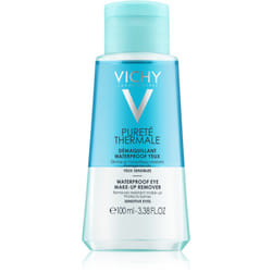 Démaquillez-vous facilement et rapidement ! Le démaquillant biphasé pour les yeux sensibles Vichy Pureté Thermale élimine immédiatement le maquillage des yeux, y compris les mascaras waterproof, et il apaise la peau. Grâce à sa composition respectueuse, il n’irrite pas les yeux, même sensibles, et il convient à toutes celles qui portent des lentilles de contact.