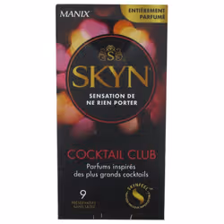 MANIXSkynSensation de ne rien porterCockatil clubParfums inspirés des plus grands cocktails Dispositif médicalPréservatifs x9 Ceci n'est pas qu'une boîte de preservatifs, ceci est un concentré d'innovation technologique qui favorise l'intimité de l'expérience sexuelle.La matière Skynfeel est douce et confortable afin de restituer des sensations plus naturelles et plus intenses.Vous détenez le sésame pour des sensations incroyables, qui vous permettront de tout ressentir.Ceci n'est pas qu'une boite de preservatifs, ceci est l'aboutissement de la sensation de ne rien porter. Découvrez le cocktail de sensations :3 pina colada.3 cherry sunrise.3 daiquiri passion.MB Lab 8 Rue des Primeurs82000 Montauban, France
