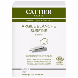 CATTIERArgile BlancheSurfinePeaux sèches et fragilesCosmétique Biologique200gDécouvrez l'Argile Blanche Surfine : c'est la plus douce des argiles, elle peut s'utiliser pour ses multiples bienfaits! Elle s'utilise en masque de beauté et en cataplasme pour ses multiples bienfaits. Grâce à son pH adapté à la peau, elle convient aux peaux sèches et fragiles.