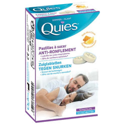 QUIESAnti-ronflementPastillesGoût Miel CitronPastilles à sucer x12Ces pastilles à sucer anti-ronflement Quies limitent les vibrations sonores et les ronflements. La présentation sous forme de pastille à sucer permet de diffuser en quantité très importante un agent filmogène efficace (gomme xanthane, extrait naturel végétal) pour obtenir une action mécanique lubrifiante qui contribue à limiter les vibrations sonores du voile du palais et ainsi supprimer les ronflements. La diffusion lente garantit une meilleure répartition des actifs dans le fond du palais et favorise une action prolongée, un anti-ronflement efficace.