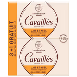 ROGE CAVAILLESSavon Surgras Extra douxLait et mielPeaux délicates et sensibles3x250g + 1 GratuitProduit iconique de la marque Cavaillès, le Savon Surgras est synonyme de douceur et de souplesse au quotidien. Avec le Savon Surgras Extra-Doux Lait et Miel, ce sont les peaux sensibles de toute la famille qui bénéficient de ses vertus !-Des agents surgras Pro-Régénérant et de l’Huile d’Amande Douce pour renforcer le film hydrolipidique cutané, barrière naturelle contre les agressions extérieures-L’association des vertus nourrissantes et adoucissantes de l’Huile d’Amande Douce et de l’Huile de Noyau de Pêche-Ce Savon doux pour la peau procure confort et hydratation naturelle à votre peau