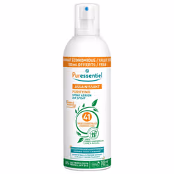 Puressentiel Assainissant Spray Aérien aux 41 Huiles Essentielles 500 ml est un spray au format familial à la formule brevetée de 41 Huiles Essentielles Botaniquement et Biochimiquement Définies (HEBBD). Il agit pour traiter l'air intérieur, limiter les sources d'épidémies, et chasser les polluants et les mauvaises odeurs. Il a une action :
