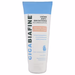 CICABIAFINECrème corporelleAnti-irritations HydranteSoulage immédiatement Bébés, Enfants et AdultesPeaux extra-sèches ou à tendance atopique200mlLa Crème Anti-irritations Nourissante CICABIAFINE®, enrichie en avénanthramides, acides gras et panthénol :• Soulage immédiatement les sensations de démangeaisons et les irritations • Nourrit durablement la peau • Améliore l'aspect de la peau (rougeurs, squames et rugosités) Dès la première application, la peau est soulagée et durablement nourrie. Jour après jour, elle est réparée. Texture crémeuse, sans effet gras.-La Crème Corporelle Anti-Irritations Nourrissante Cicabiafine pour les peaux extra-sèches ou à tendance atopique. Elle soulage immédiatement les sensations de démangeaisons et les irritations.-Dès la 1ère application, la peau est soulagée et durablement nourrie. Jour après jour, elle est réparée.-Enrichie en avénanthramides, acides gras et panthénol, cette crème améliore l'aspect de la peau (rougeurs, squames et rugosités). Convient à toute la famille, dès 6 mois.