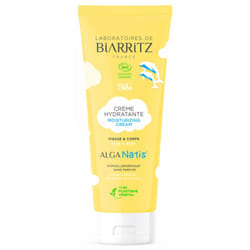 LABORATOIRES DE BIARRITZAlga NatisSoin BébéCrème hydratante visage et corps de bébéHydrate, nourrit et apaiseDès la naissance, hypoallergéniqueCosmétique biologiqueAux actifs marinsTube de 100mlHydrate, nourrit, apaiseA l’Alga-Paisium, actif exclusif, qui apaise la peau fragile du nourrisson et la protège des irritations.La Crème hydratante ALGA NATIS® prend soin de l’épiderme délicat de bébé. Sa formule haute tolérance hydrate, nourrit, renforce la barrière cutanée encore immature, s’oppose au dessèchement et prévient les petites irritations.Pour une peau douce, confortable, apaisée et protégée.La texture légère et glissante de la Crème hydratante permet la réalisation de massages qui apportent bien-être à l’enfant et renforcent le lien avec les parents. Sans parfum. Hypoallergénique¹. Testée sous contrôle dermatologique et ophtalmologique. Sécurité garantie dès la naissance (à l’exclusion des prématurés).