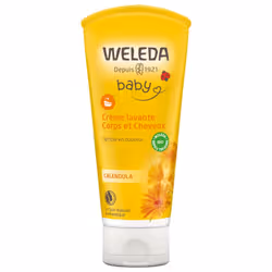 WELEDA BEBECalendulaCrème lavante visage et corps200mlSa base lavante particulièrement douce, sans savon, associée aux huiles d'amande douce et de sésame bio fait de cette crème lavante le produit idéal pour la toilette quotidienne des nourrissons et des jeunes enfants.Cette crème lavante, sans savon, est spécialement conçue pour la toilette quotidienne des bébés et des jeunes enfants. Elle nettoie en douceur les cheveux délicats et la peau fragile de bébé, grâce à une base lavante végétale douce qui ne pique pas les yeux.Enrichie en huiles d'amande douce et de sésame de qualité biologique, elle prévient le dessèchement cutané. Elle contient également un extrait de fleur de calendula de qualité biologique, qui calme et apaise. Ces substances d'origine naturelle soigneusement sélectionnées laissent la peau douce et facilitent le démêlage des cheveux.Tolérance cutanée testée sous contrôle dermatologique
