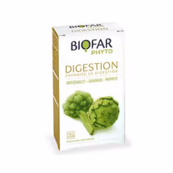 La digestion est un phénomène complexe, aussi bien mécanique que chimique, qui est souvent déréglé. Constipation, flatulences, remontées acides… Un large panel de troubles digestifs qui peuvent apporter leur lot de désagréments au quotidien ! Les Laboratoires Biofar ont pris le meilleur de la nature pour favoriser votre digestion avec une association synergique d’artichaut, ananas, papaye, fibres et vitamines B… Le tout avec un bon goût d’agrumes !