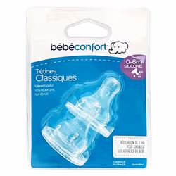 - Bebe Confort – Tétines silicone classique T1 (x2) – 3 vitesses (0-6M +)