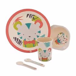 - Bebe Confort – Coffret repas en Bambou (Assiette, bol, verre, cuillère, fourchette) – Jungle Vibes (18M +)