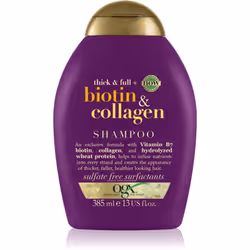 Vous ne voulez pas de cheveux plats, en perte totale de volume ? Apportez-leur tous les nutriments nécessaires pendant que vous les lavez. Pour cela, optez pour le shampoing épaississant OGX Biotin & Collagen qui élimine les impuretés tout en veillant à nourrir intensément votre chevelure. Une seule utilisation suffit et même les cheveux les plus fins paraîtront déjà plus denses, gagnant en volume et apportant de la texture à chacune des mèches.