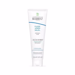 LABORATOIRES DE BIARRITZFluide après-soleilVisage et corpsTous types de peauxAux actifs marinsUtilisable par la femme enceinte et allaitanteUtilisable à partir de 1 anCosmétique biologiqueTube de 150mlLe Fluide après-soleil certifié Bio* hydrate et apaise la peau suite à l’exposition solaire : les sensations de tiraillement et d’échauffement disparaissent, l’épiderme retrouve confort et douceur.Comme la production de radicaux libres néfastes pour les structures cutanées ne s’arrête pas dès la fin de l’exposition, le Fluide après-soleil contient de l’Alga-Gorria®, extrait breveté d’algue rouge au fort pouvoir antioxydant. Ainsi, grâce au Fluide après-soleil, visage et corps sont apaisés suite à l’exposition et continuent d’être protégés des attaques radicalaires.La texture spécifique «gel-crème» du Fluide après-soleil procure une sensation de fraîcheur et d’apaisement dès l’application. Pour renforcer cette sensation de fraîcheur agréable après une exposition au soleil, le Fluide après-soleil peut être placé au réfrigérateur.