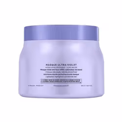 Description : Masque déjaunisseur qui nourrit la fibre et neutralise durablement les faux-reflets. Idéal pour les blonds froids et les cheveux gris à la recherche de neutralisation des reflets jaunes, cette formule riche à base de pigments bleus et violets infuse la fibre capillaire pour éliminer les faux-reflets jaunes, tout en la nourrissant.  La combinaison unique d'acide hyaluronique et de fleur d'Edelweiss lisse la fibre et la protège de l'oxydation et de la pollution quotidienne.