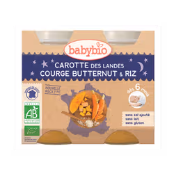 - Babybio Carotte des landes, courge butternut et riz, dès 6 mois, 2*200g
