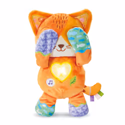 Un chaton tout doux et farceur qui joue à coucou-caché avec Bébé ! 1 bouton Cœur lumineux et 2 boutons interactifs pour déclencher + de 35 chansons, mélodies, phrases et sons de la nature. Différentes matières et textures. Réglage du volume sonore. Dès 10 mois. 2 piles LR6 fournies.