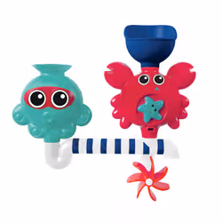 Le circuit d’eau Aqua Game est plein d’astuces pour s’amuser à l’heure du bain. Lorsque l'eau coule dans le mécanisme, elle ressort de façon surprenante ! Les tourniquets s’actionnent, laissent glisser l’eau dans le tube puis s’écoule en une jolie pluie fine et fait tourner le moulin. Un circuit original qui plaira à Bébé, fou rire assuré !