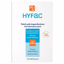 HYFACPatch special imperfections.Pastille adhésive invisible.Assèche et diminue les imperfections2 sachets de 15...Lire la description complète ↓