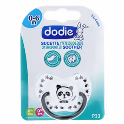 Dodie Sucette Physiologique Silicone 0-6 Mois N°P33 - Modèle : Panda est une sucette développée avec des experts pour les bébés de 0 à 6 mois.