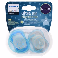 - Avent Ultra Air Nighttime 2 Sucettes Orthodontiques 6-18 Mois - Couleur : Bleu