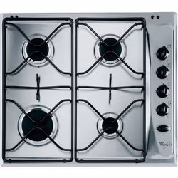 Plaque de Cuisson Encastrable WHIRLPOOL - Type de Plaque: à Gaz - Largeur: 58 cm - Nombre de foyers: 4 Foyers - Puissance max de Gaz: 7300 Watts - Allumage électrique - Type de Commandes: Mécanique - Commandes latérales - Grilles et chapeaux de bruleurs émaillés - Profondeur de la niche d'encastrement: 480 mm - Largeur maximum de la niche d'encastrement: 560 mm - Dimensions: 58 x 50 x 4.1 cm - Poids: 7.5kg (Net) , 8 Kg (Brut) - Couleur: Inox